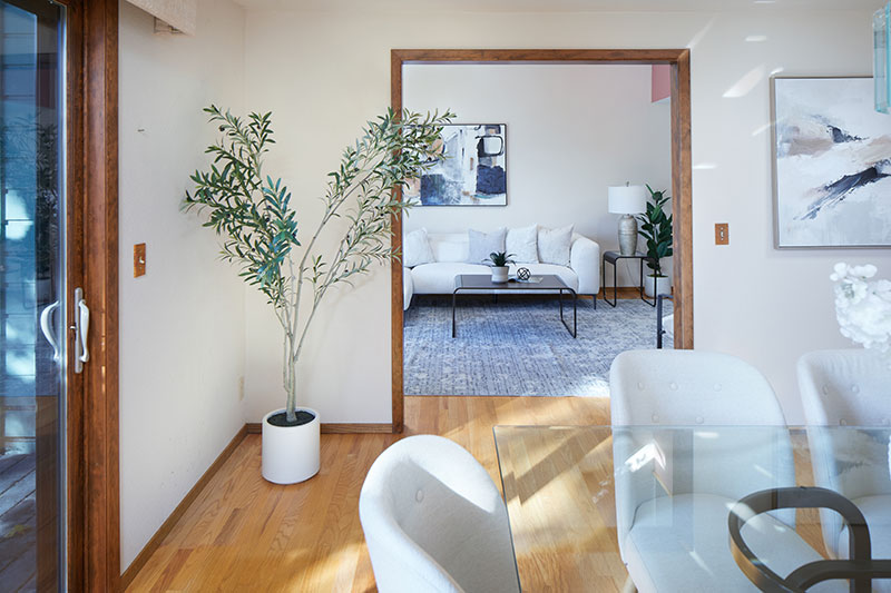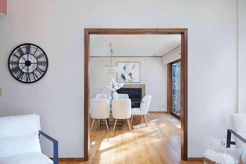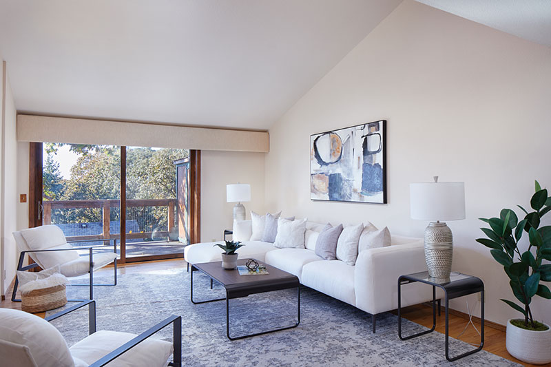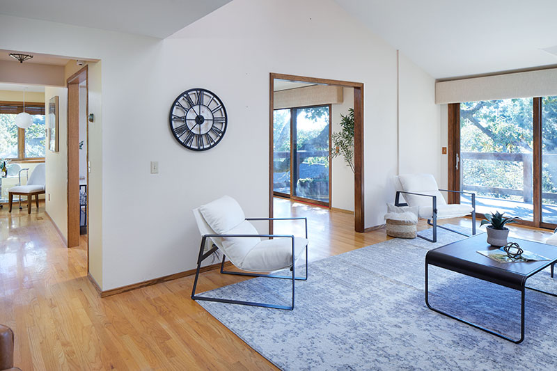 Remarkable three-story architecturally inviting zero lot line with views. Vaulted ceilings with tile, hardwood and carpet floors. All three levels have decks with sliders to large outdoor spaces—feels like living in the branches of a beautiful oak tree. Eating area in the kitchen, as well as a large formal dining room with wood-burning fireplace. Huge primary suite comprises entire upper level with cozy office or reading nook. Spacious closet off primary bath. Top two floors have updated energy-efficient Marvin windows. Flexible-use lower level with kitchenette and versatile layout provides opportunity for easy conversion to an additional bedroom.