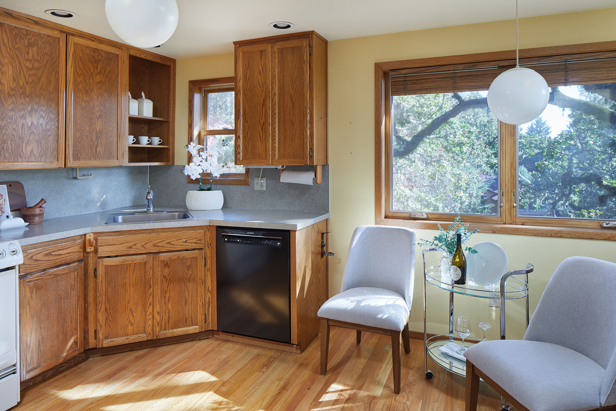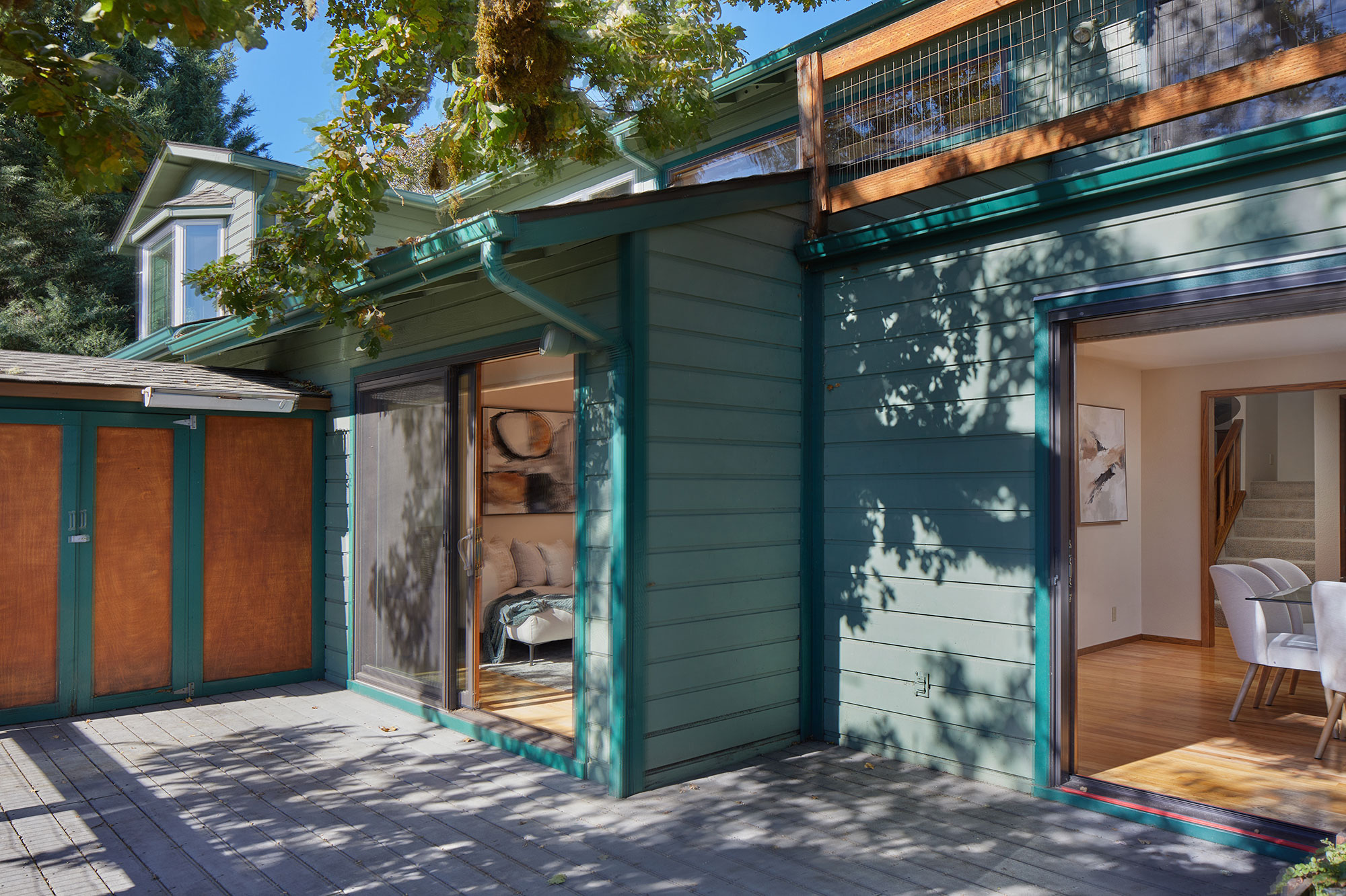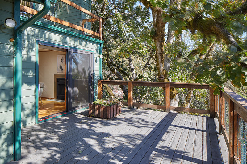 Remarkable three-story architecturally inviting zero lot line with views. Vaulted ceilings with tile, hardwood and carpet floors. All three levels have decks with sliders to large outdoor spaces—feels like living in the branches of a beautiful oak tree. Eating area in the kitchen, as well as a large formal dining room with wood-burning fireplace. Huge primary suite comprises entire upper level with cozy office or reading nook. Spacious closet off primary bath. Top two floors have updated energy-efficient Marvin windows. Flexible-use lower level with kitchenette and versatile layout provides opportunity for easy conversion to an additional bedroom.